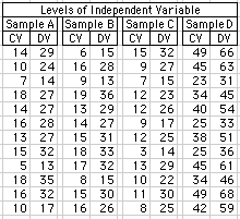 Data Entry: CV = concomitant variable [left column in each sample] DV = dependent variable [right column in each sample]