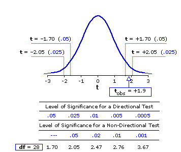 t had been equal to or greater than 2.05, we would have been able to regard the result as significant at or beyond the .025 level; and so on.
